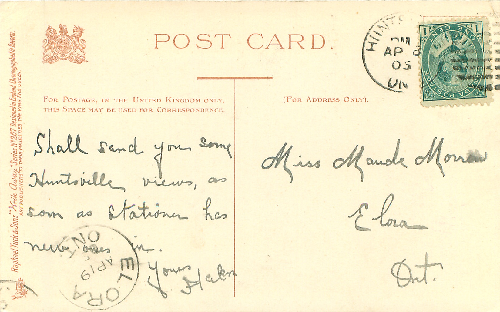 WRITE AWAY, u/b or d/b, DESIGNED IN ENGLAND, CHROMOGRAPHED IN BAVARIA, listed in 1904 POSTCARD Catalogue