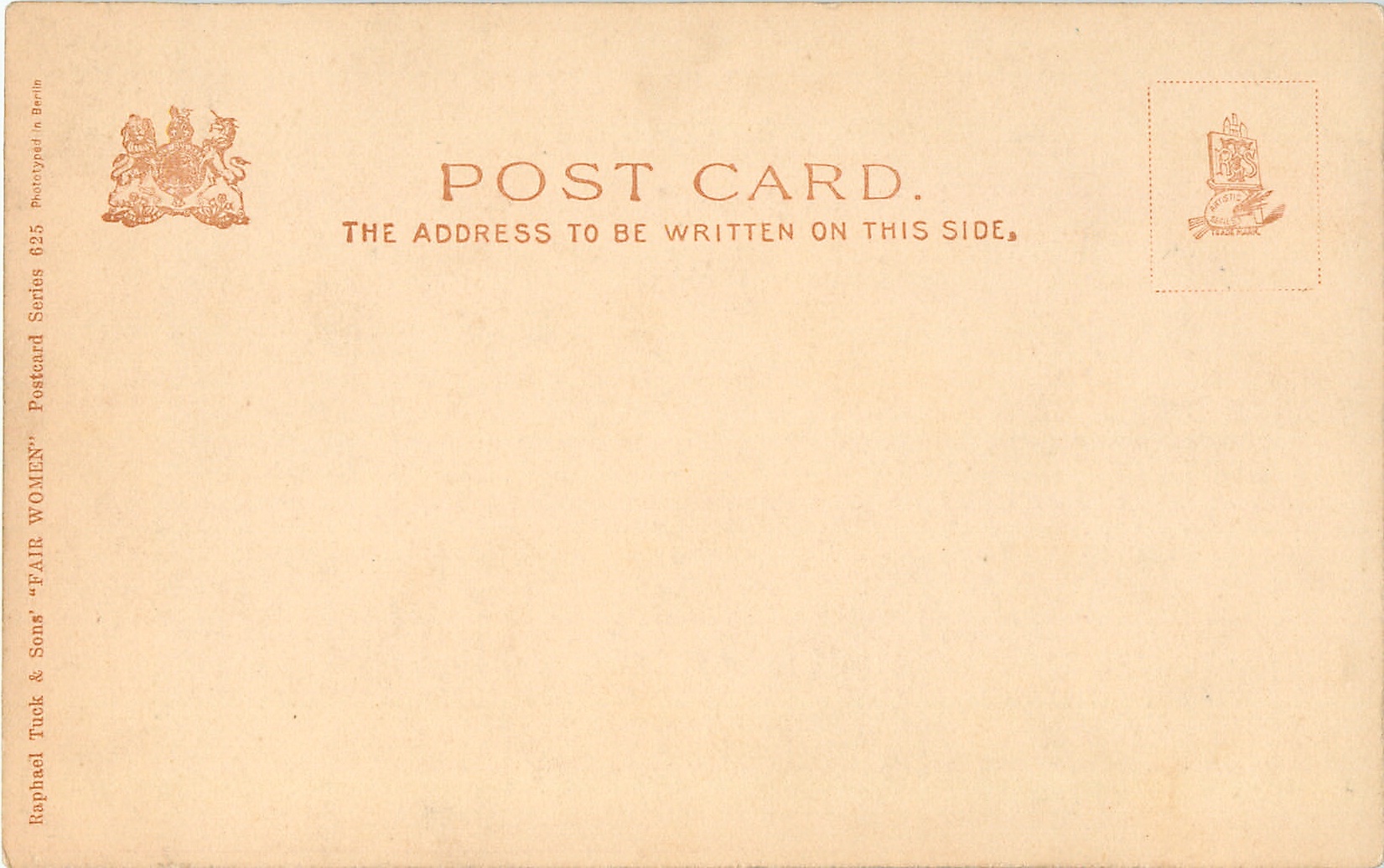 u/b, come hand-coloured, 2 backs. PHOTOTYPED IN BERLIN, listed in 1904 POSTCARD Catalogue