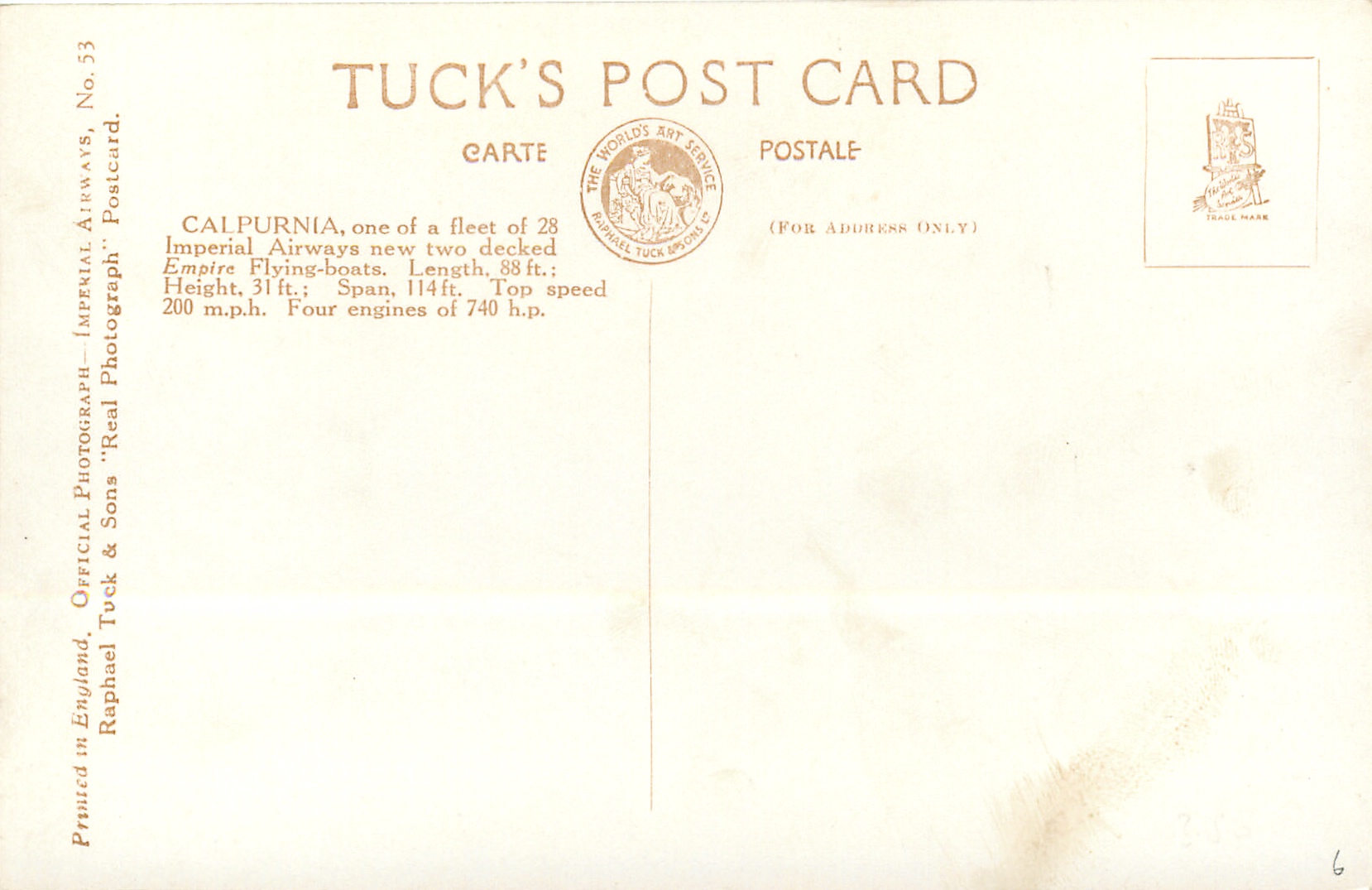 REAL PHOTOGRAPH, PRINTED IN ENGLAND, same images & inscriptions but front numbers on cards 1-6, numbers front & back 23-37, cards also sold in blue album TUCK'S IMPERIAL AIRWAYS OFFICIAL PHOTOGRAPH POSTCARDS