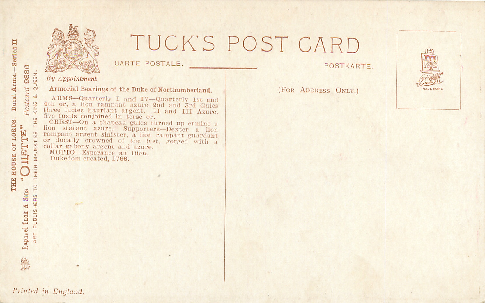 THE HOUSE OF LORDS-DUCAL ARMS SERIES II (exact title of ser. II not known without packet)