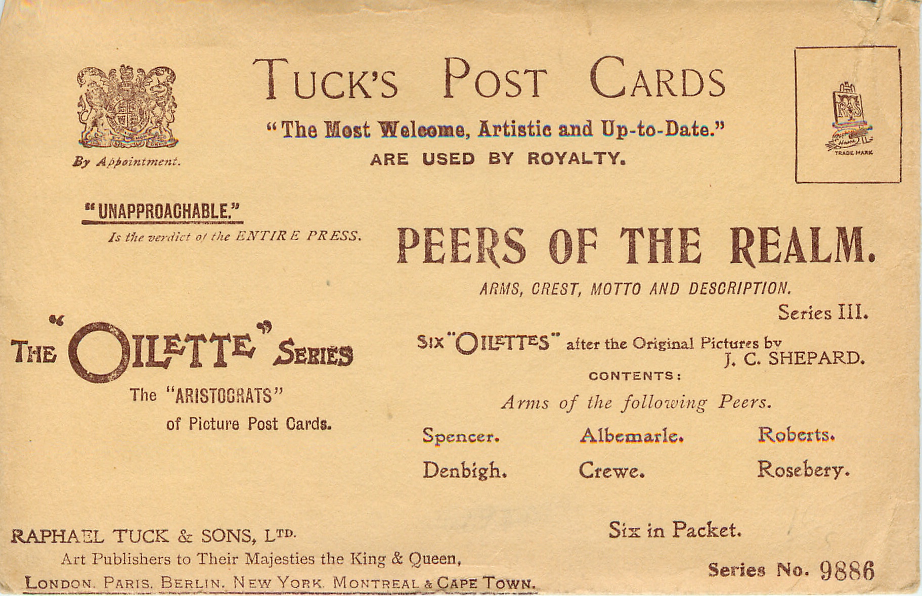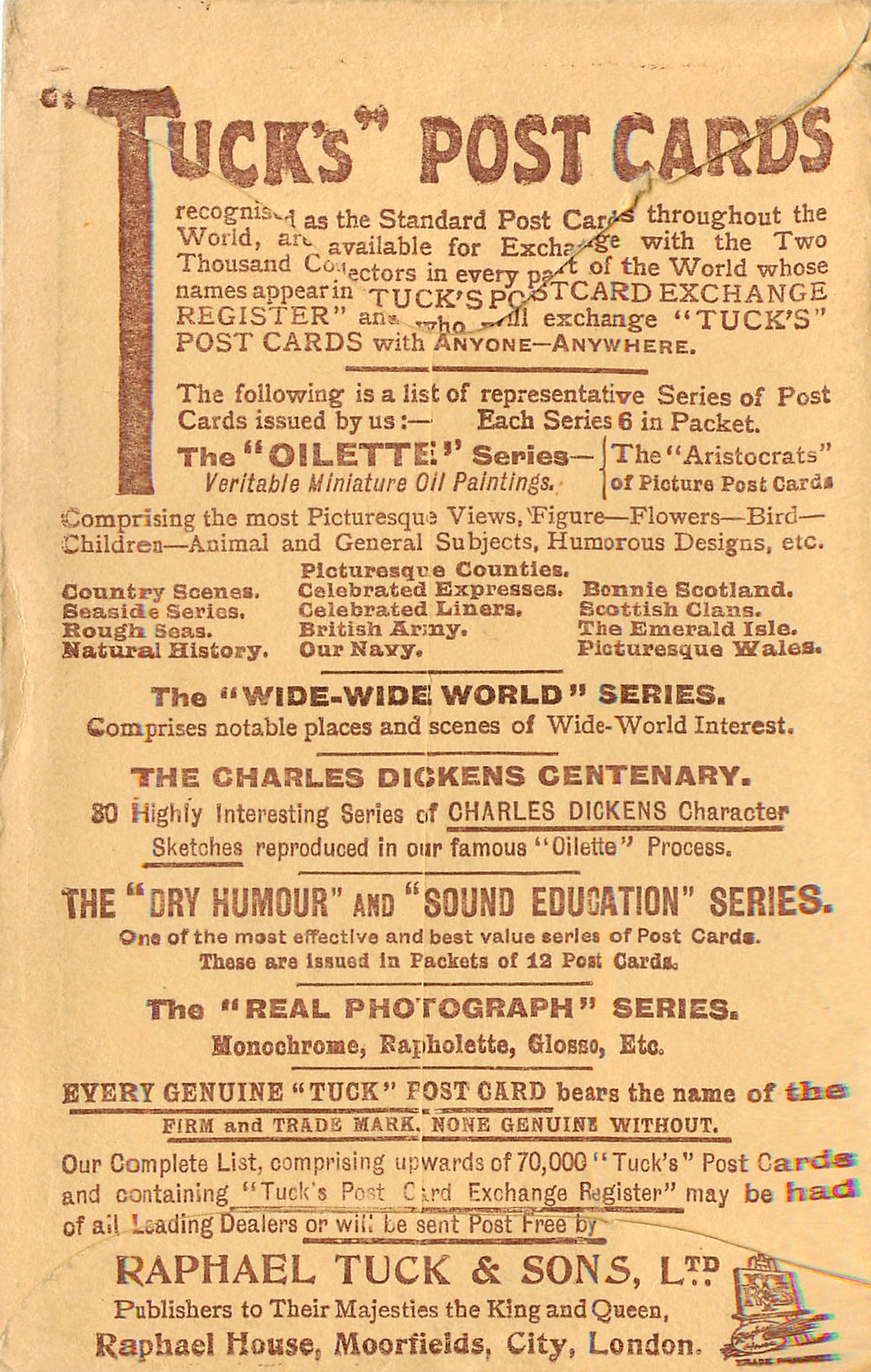 OILETTE. PRINTED IN ENGLAND, listed in 1911/1912 & 1913/1914 & 1930 POSTCARD Catalogues
