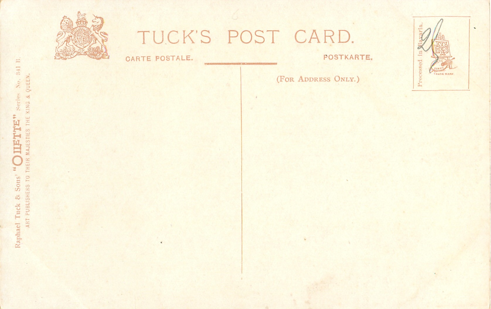 OILETTE, PROCESSED IN BAVARIA, OILETTE CONNOISSEUR on packets but not on cards, listed in 1911/1912 Postcard Catalogue