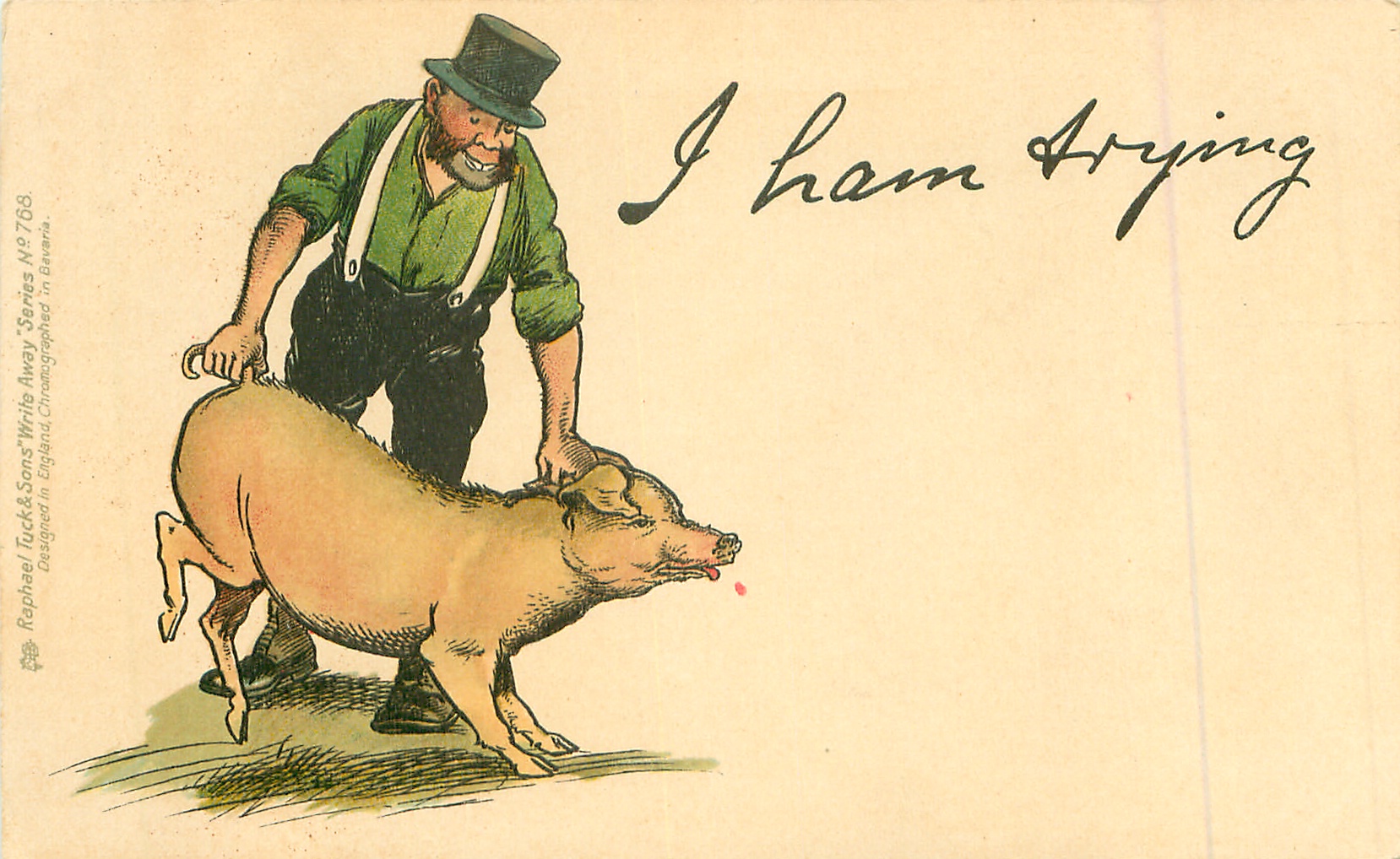 same image used on greeting card SHURE AN' ITS A STRING OF LUCK I'M WISHING YER!