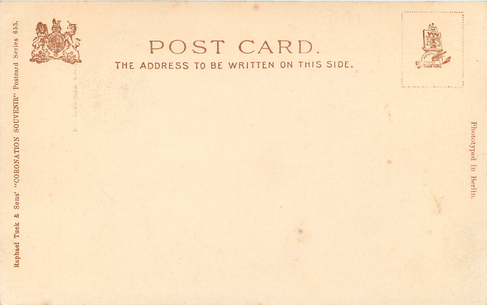 sepia or grey/black, come hand-coloured, PHOTOTYPED IN BERLIN, 2 backs, WILKINSON & CO. PHOTO, listed in 1904 POSTCARD Catalogue