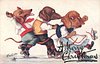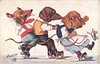 OILETTE, PROCESSED IN BAVARIA, listed as THE SKATING CARNIVAL in 1911/1912 & 1913/1914 Postcard Catalogues, same images German backs 9803 OILETTE & titled DACKEL AUF ROLLSCHUHEN