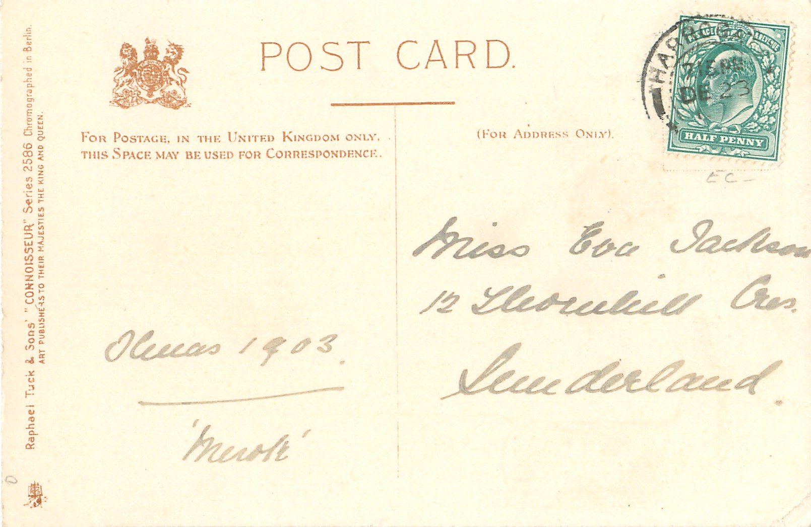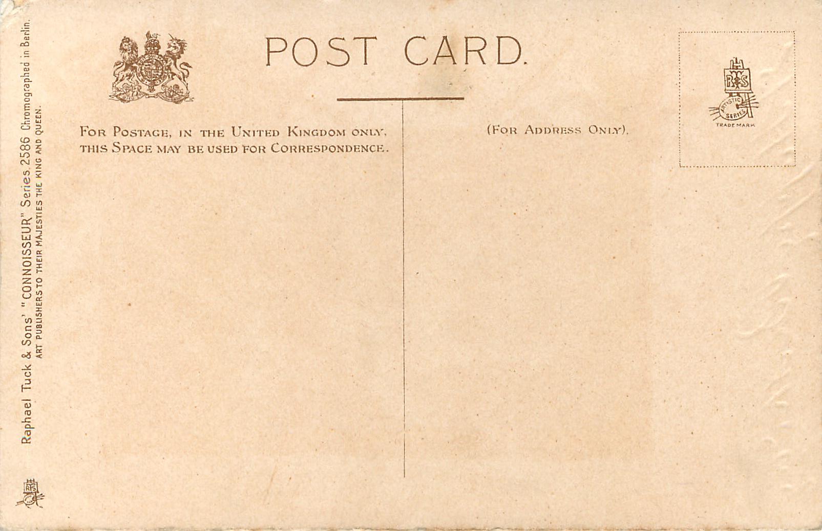 CONNOISSEUR, CHROMOGRAPHED IN BERLIN, same basic images CHRISTMAS 1907 & 1920, ELITE 3013 (large images),, listed in 1904 POSTCARD Catalogue, PROOF EDITION 7 (advertised.1902/1903), French backs SERIE 244, 345, as insets