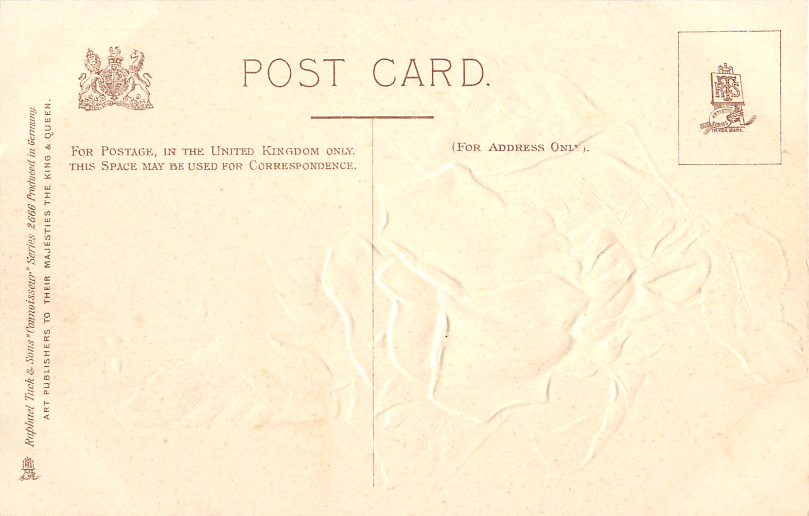 CONNOISSEUR, PRODUCED IN GERMANY, embossed, come in various radiant colours, listed in 1904 POSTCARD Catalogue