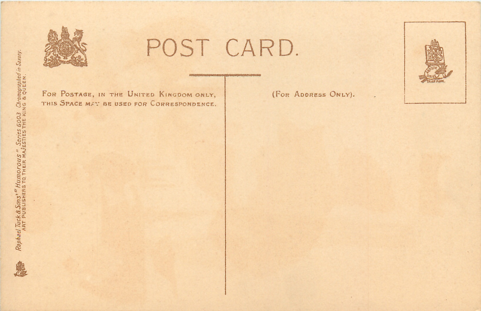 HUMOROUS, CHROMOGRAPHED IN SAXONY, listed in 1904 POSTCARD Catalogue