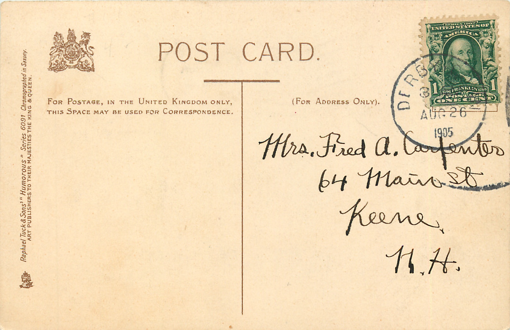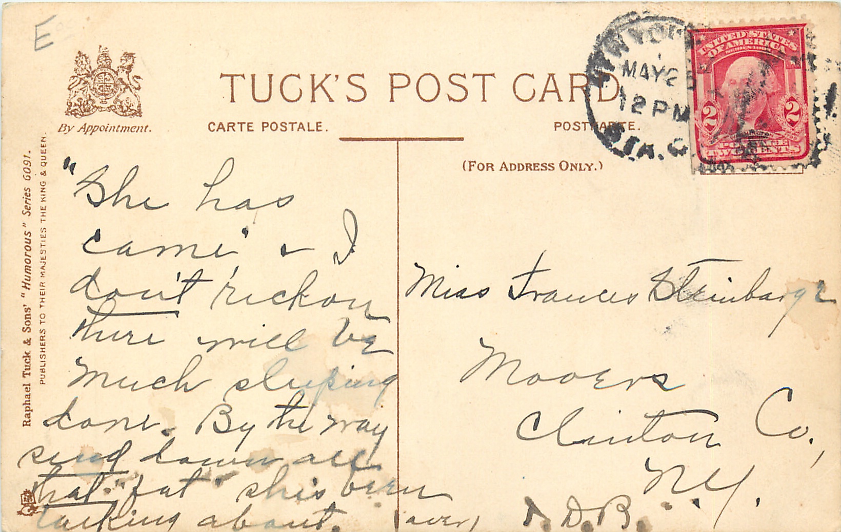 HUMOROUS, CHROMOGRAPHED IN SAXONY or CHROMO. SAXONY (in stamp box or not), set title does not appear on cards, 3 backs, listed as SONGS ILLUSTRATED in 1908/1909 & 1911/1912 Postcard Catalogue