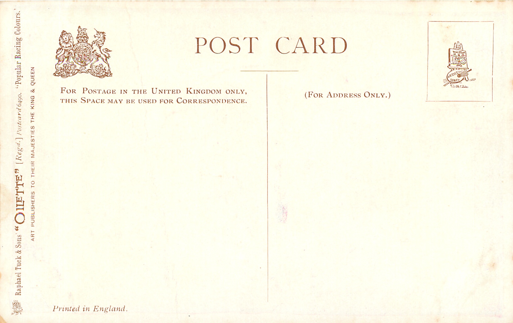 OILETTE, PRINTED IN ENGLAND, 2 backs, listed in 1908/1909 &1911/1912 & 1912/1913 &1913/1914 & 1930 POSTCARD Catalogues