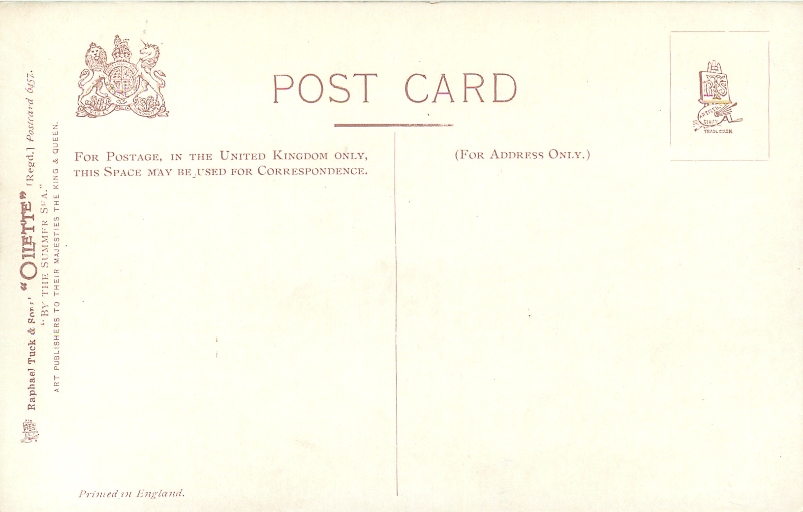 OILETTE, PRINTED IN ENGLAND, 3 backs, listed in 1908/1909 & 1911/1912 & 1913/1914 Postcard Catalogues
