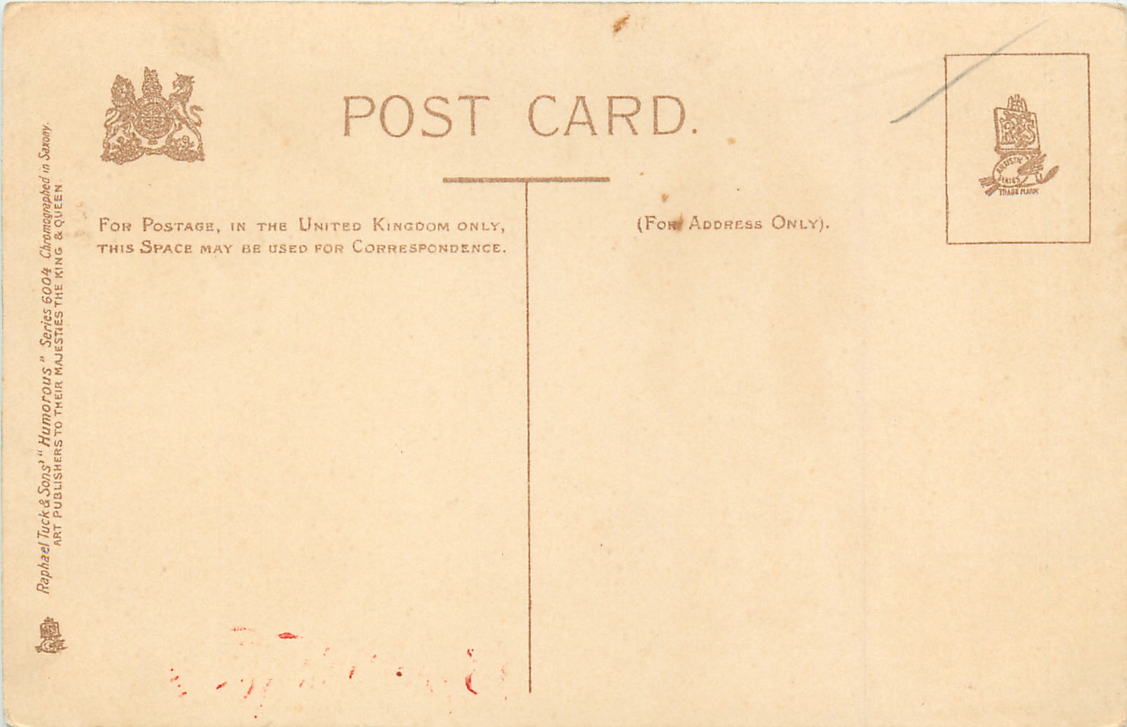 HUMOROUS, CHROMOGRAPHED IN SAXONY (in stamp box or not), series title does not appear on cards, listed in 1904 POSTCARD Catalogue