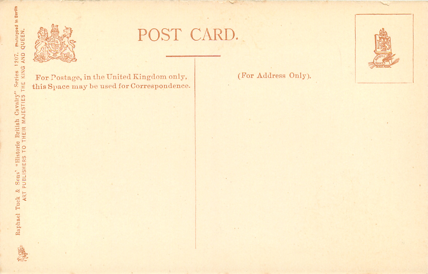come sepia/grey, PHOTOTYPED IN BERLIN, listed in 1904 POSTCARD Catalogue