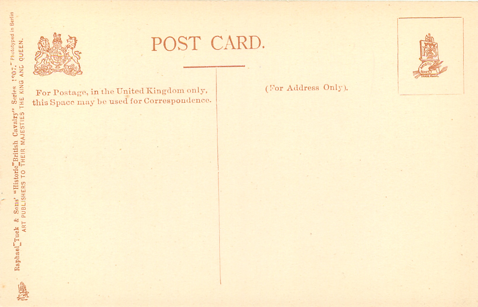 come sepia/grey, PHOTOTYPED IN BERLIN, listed in 1904 POSTCARD Catalogue