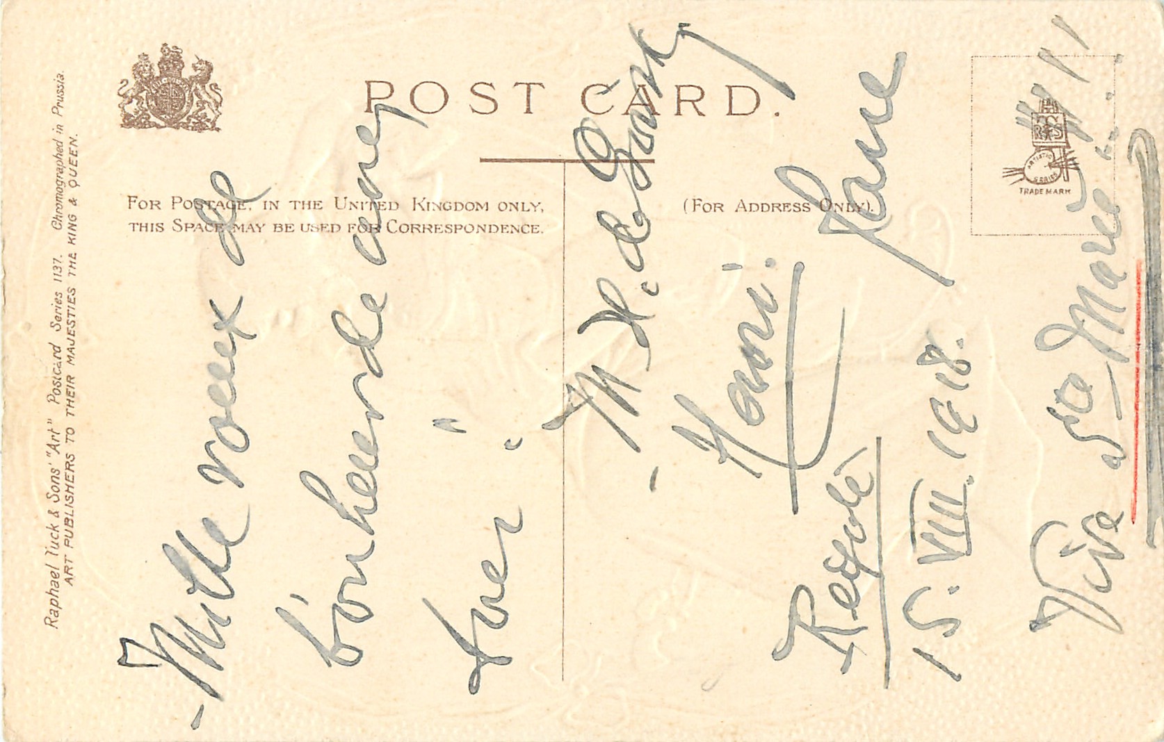 ART, gilt embossed, CHROMOGRAPHED IN PRUSSIA, listed in 1904 POSTCARD Catalogue