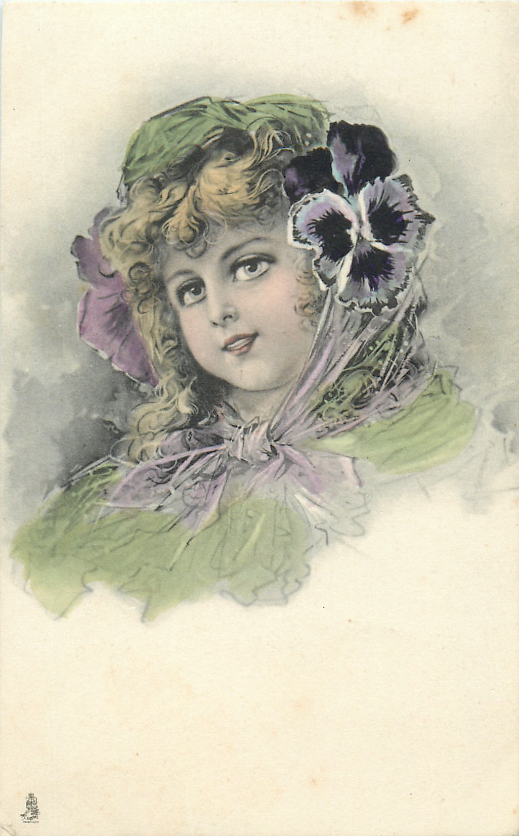 ART, come hand-coloured, PRODUCED IN BERLIN, listed in 1904 POSTCARD Catalogue (as LITTLE BLOSSOMS)