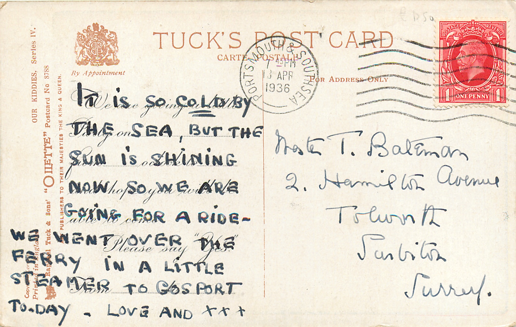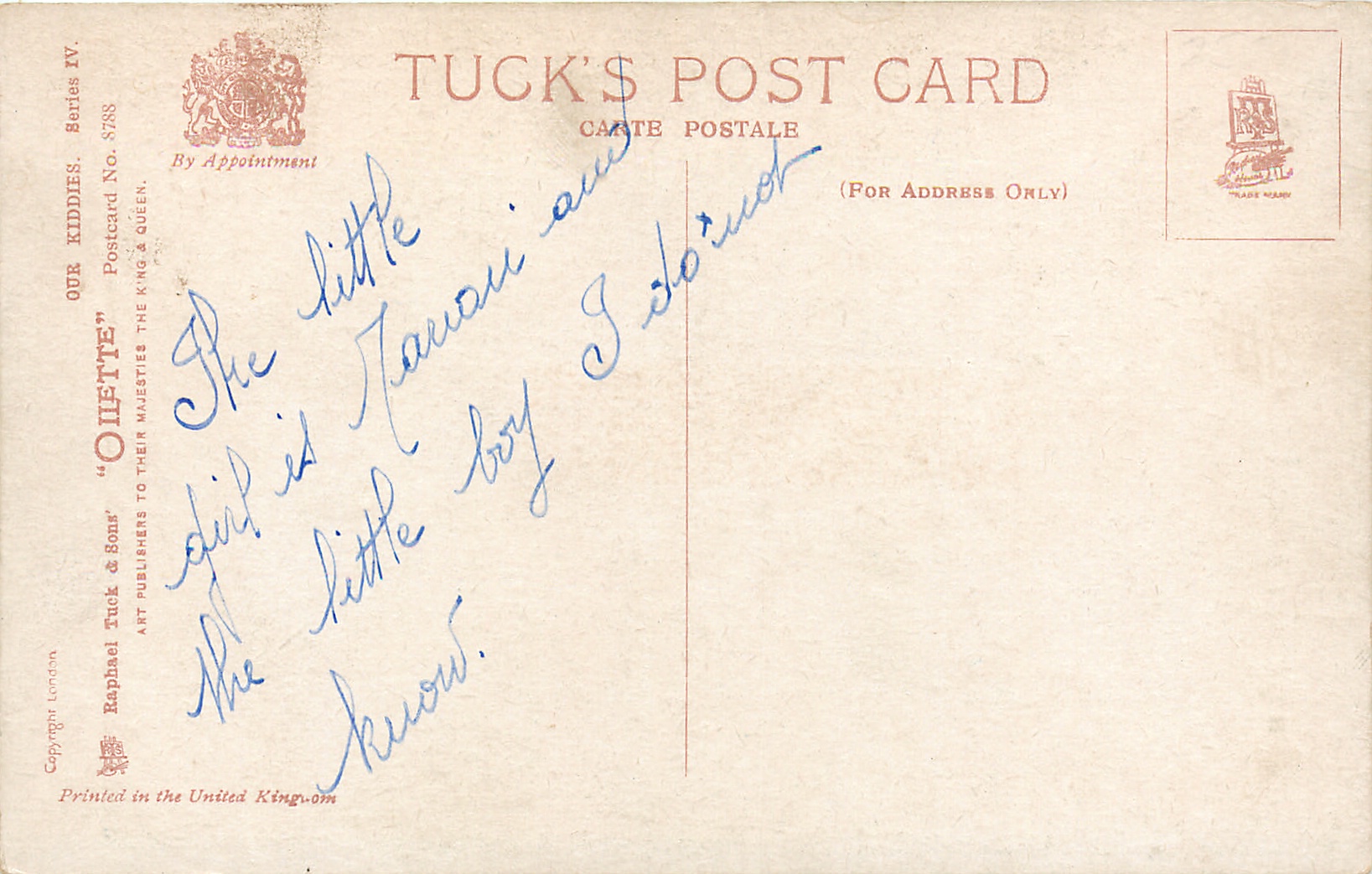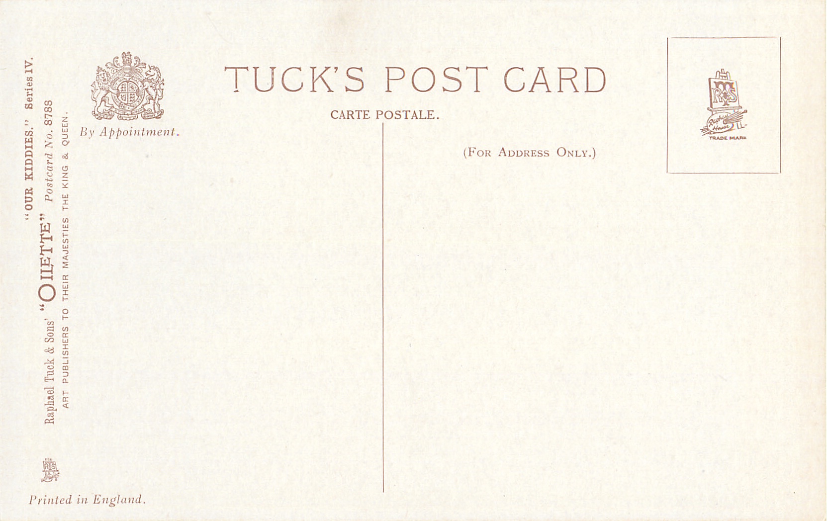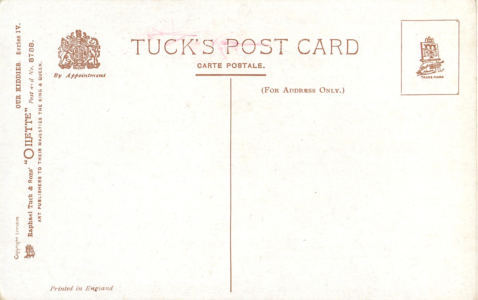 OILETTE, PRINTED IN ENGLAND or PRINTED IN THE UNITED KINGDOM, COPYRIGHT LONDON or not, listed in 1930 POSTCARD Catalogue