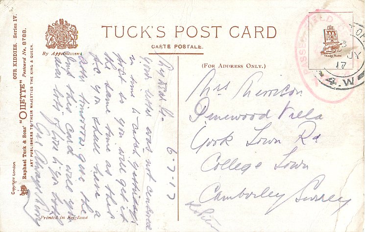 OILETTE, PRINTED IN ENGLAND or PRINTED IN THE UNITED KINGDOM, COPYRIGHT LONDON or not, listed in 1930 POSTCARD Catalogue
