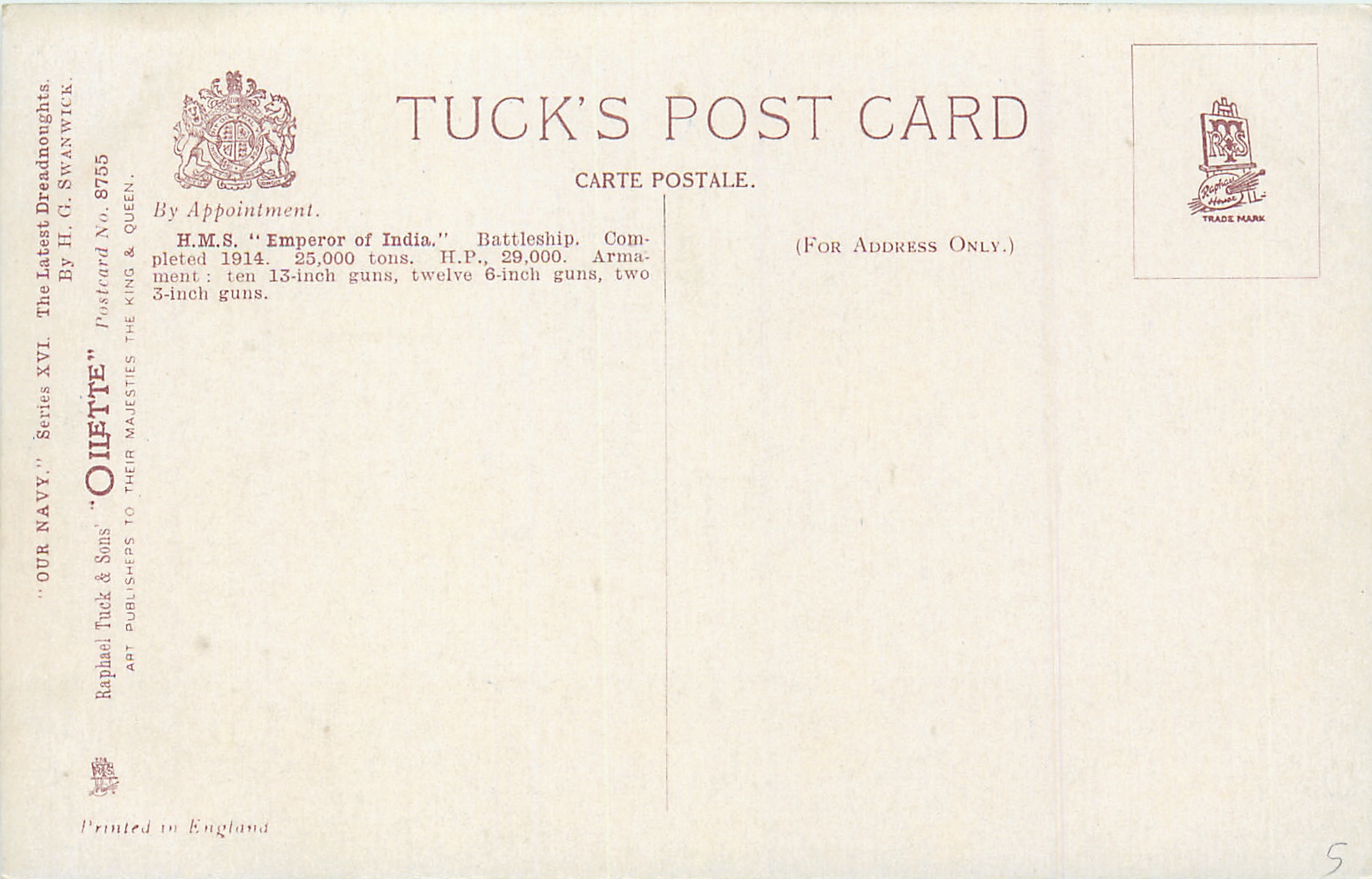 OILETTE, PRINTED IN ENGLAND, come OFFICIALLY PASSED BY THE ADMIRALTY on back