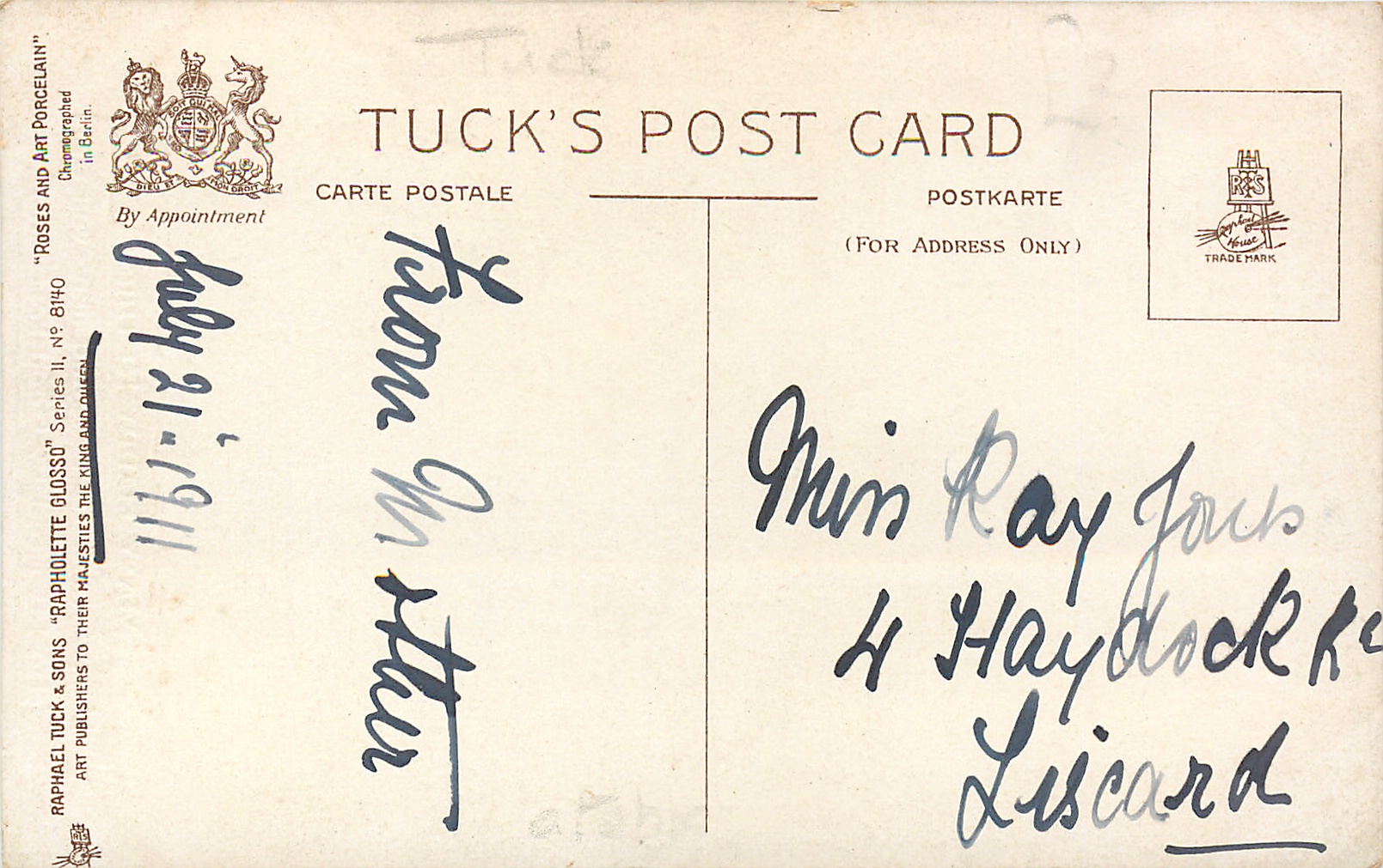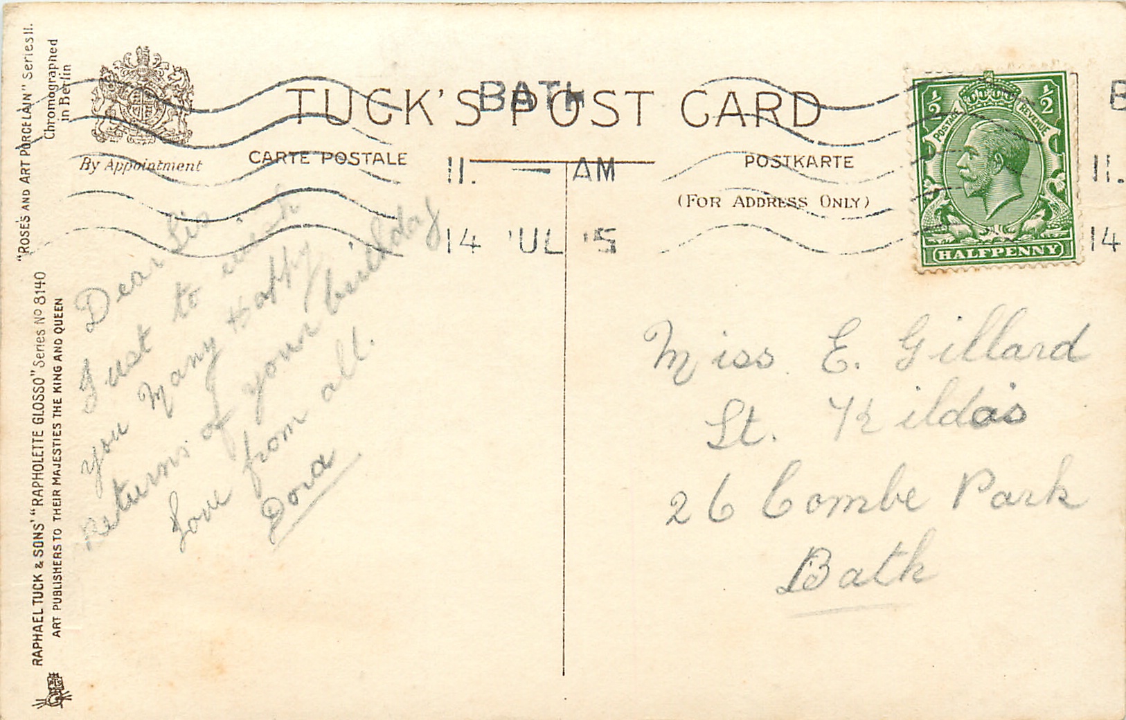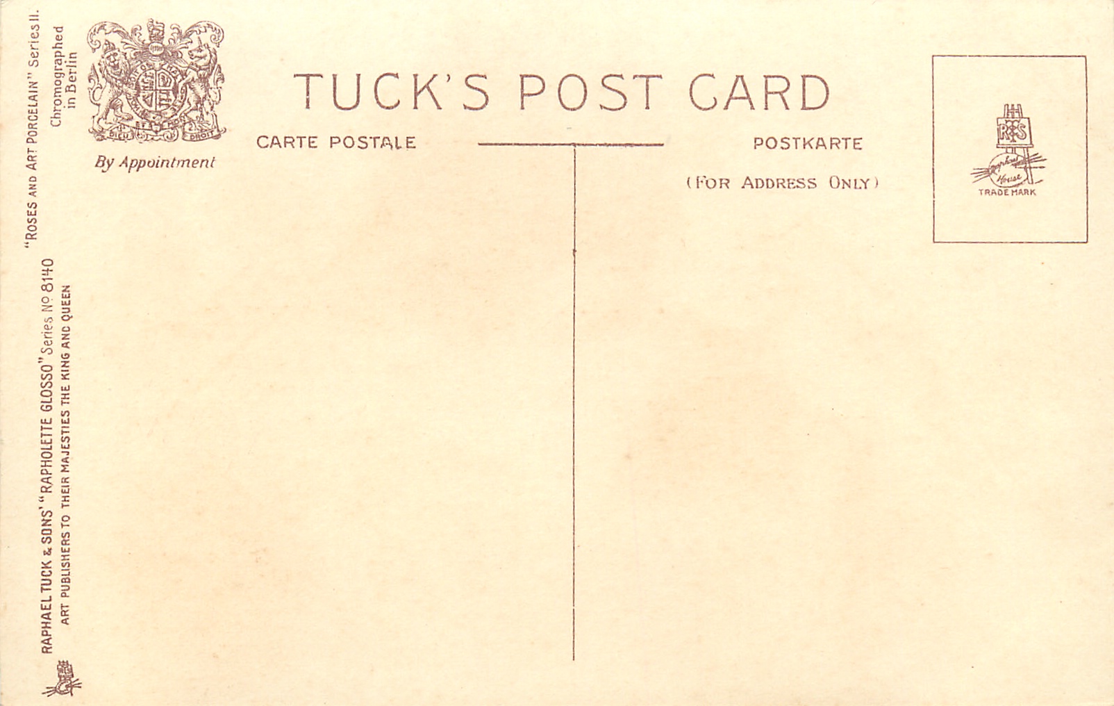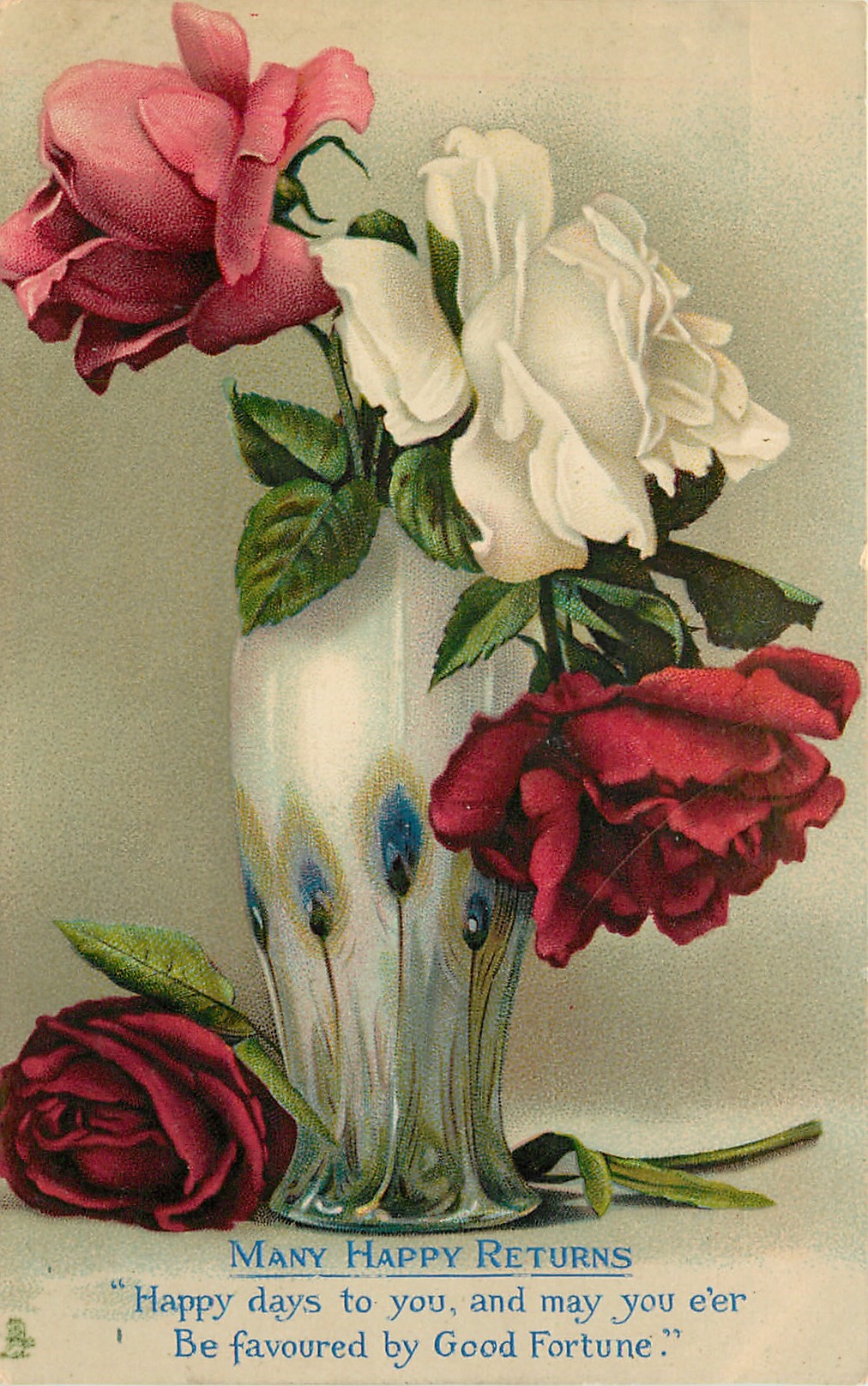RAPHOLETTE GLOSSO, CHROMOGRAPHED IN BERLIN, same images 8140 without greetings, same shape vases but colour may differ, with other roses Birthday R 6084, 8139, same images with Xmas greetings C 5168