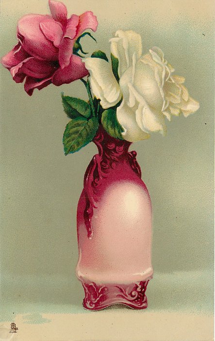 RAPHOLETTE GLOSSO, CHROMOGRAPHED IN BERLIN, same images 8140 without greetings, same shape vases but colour may differ, with other roses Birthday R 6084, 8139, same images with Xmas greetings C 5168