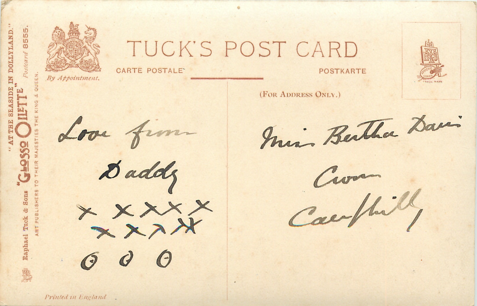 GLOSSO OILETTE, PRINTED IN ENGLAND, listed in 1908/1909 & 1911/1912 POostcard Catalogue, same images, series & card titles OILETTE 6494