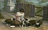 PETS & PLAYMATES, child & St. Bernard dog