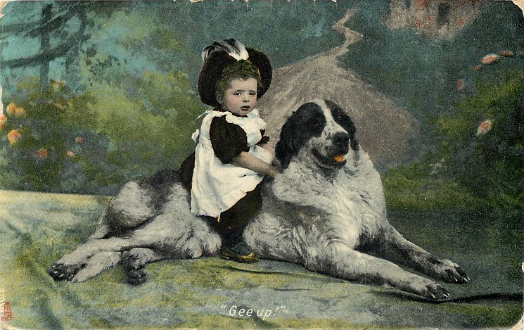 PETS & PLAYMATES, child & St. Bernard dog