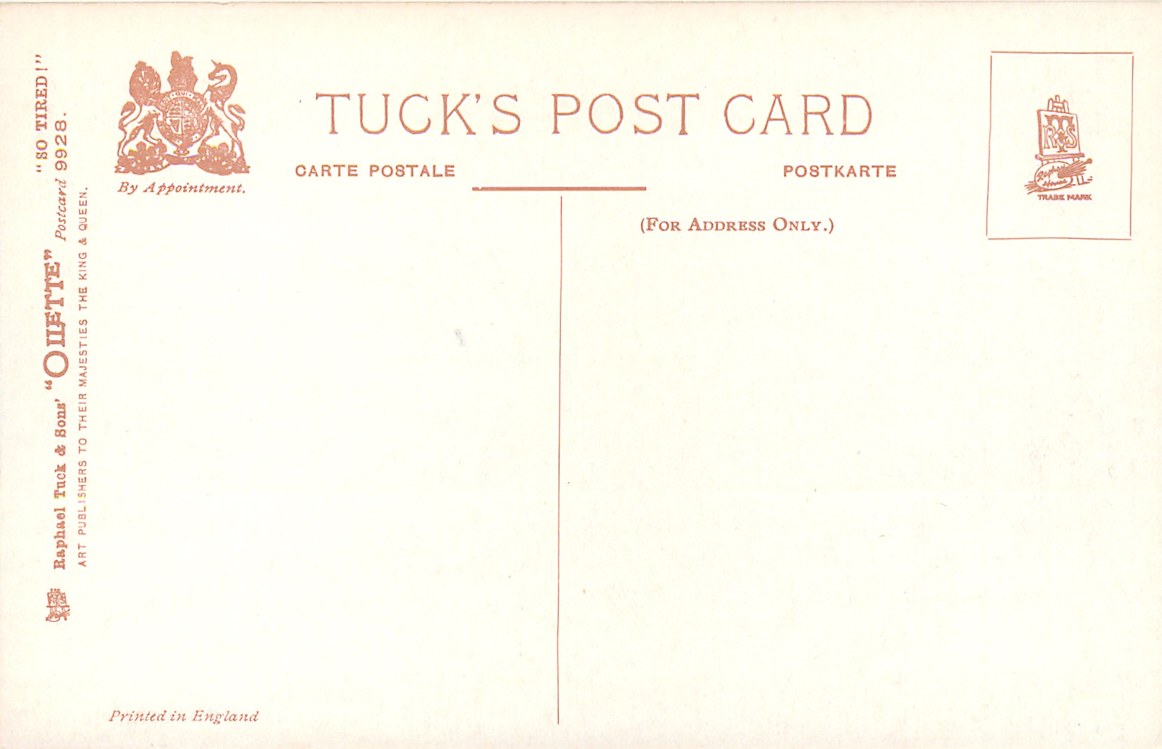 OILETTE, listed in 1912 & 1914 & 1926/1927 & 1930 Postcard Catalogues, come Oilfacsim but not so trade-named, PRINTED IN ENGLAND or PRINTED IN UNITED KINGDOM with or w/o COPYRIGHT LONDON, same images & titles OILETTE CONNOISSEUR 2776 mammy's darling