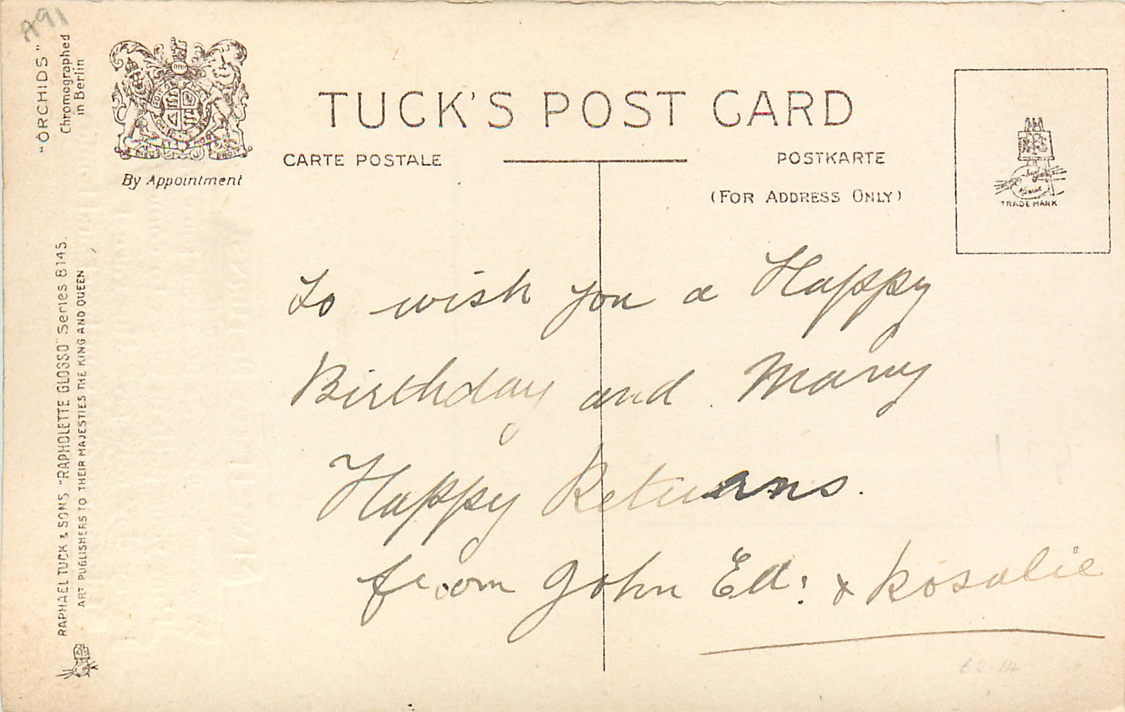 comes opt. in black MANY HAPPY RETURNS verse