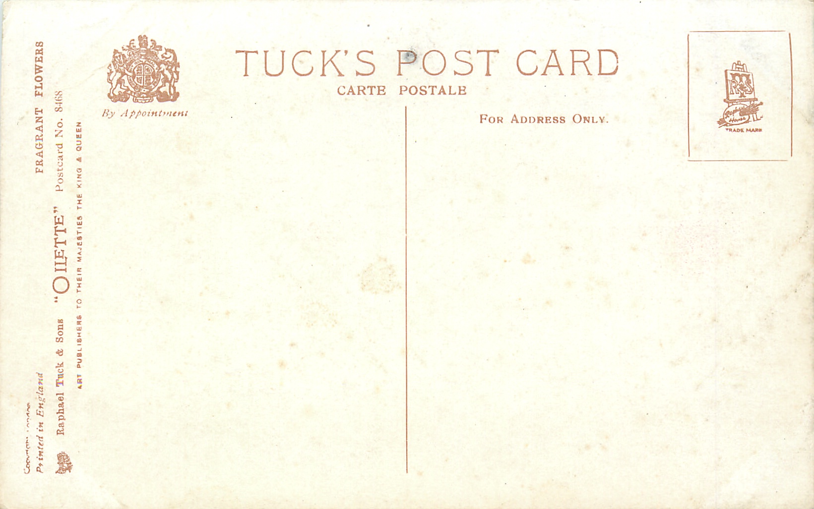 OILETTE, PRINTED IN ENGLAND, COPYRIGHT LONDON, multiple backs with slight variation, listed in 1926/1927 & 1930 Postcard Catalogues