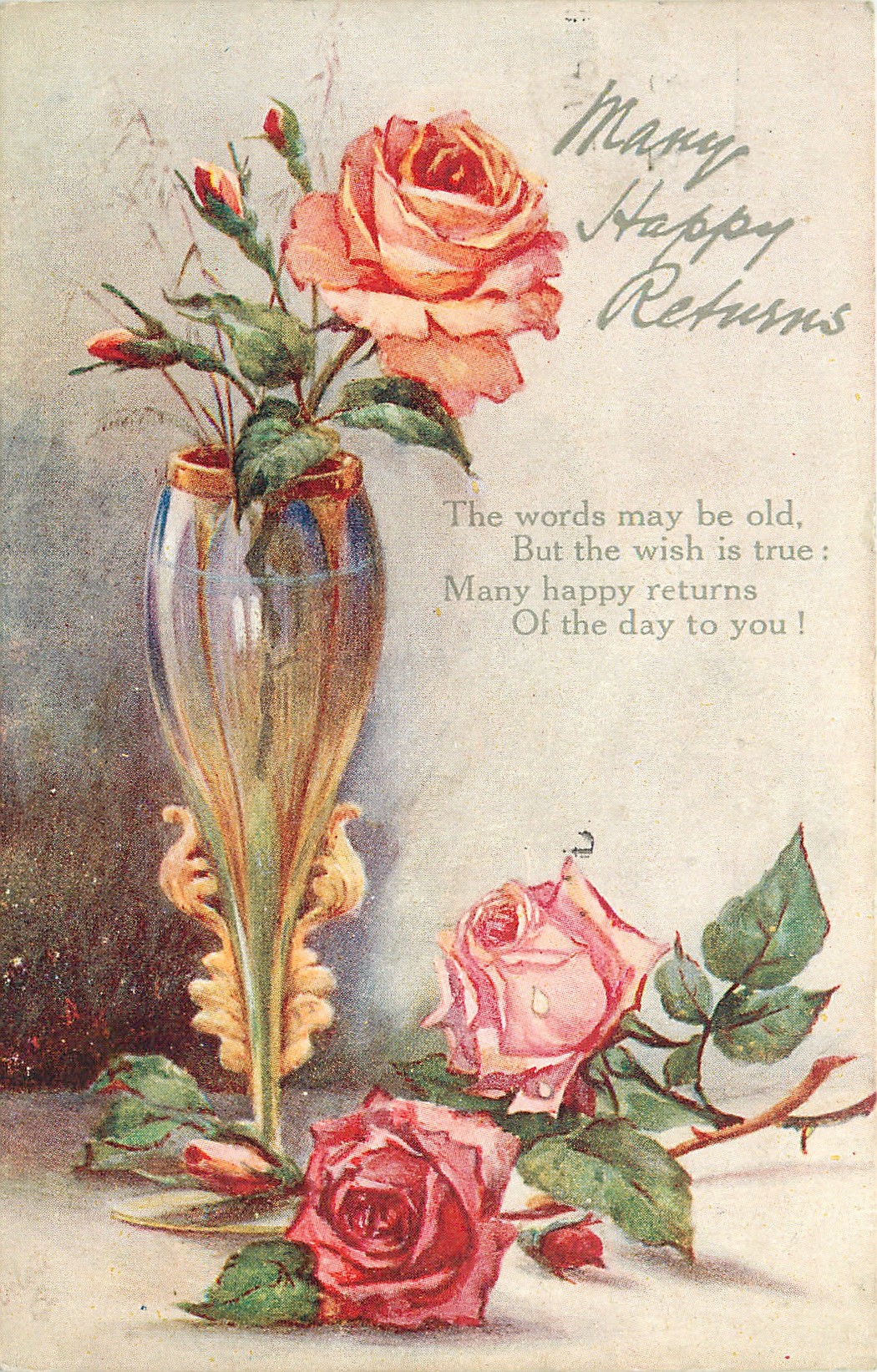 comes opt. in green MANY HAPPY RETURNS verse