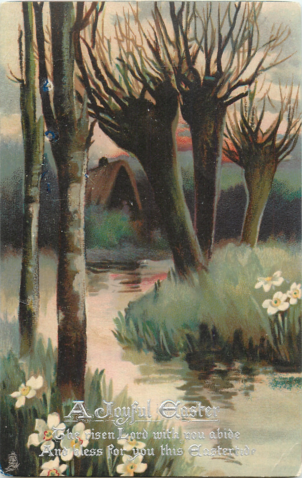 come opt. in silver A JOYFUL EASTER & verse:- THE RISEN LORD WITH YOU ABIDE AND BLESS FOR YOU THIS EASTERTIDE.