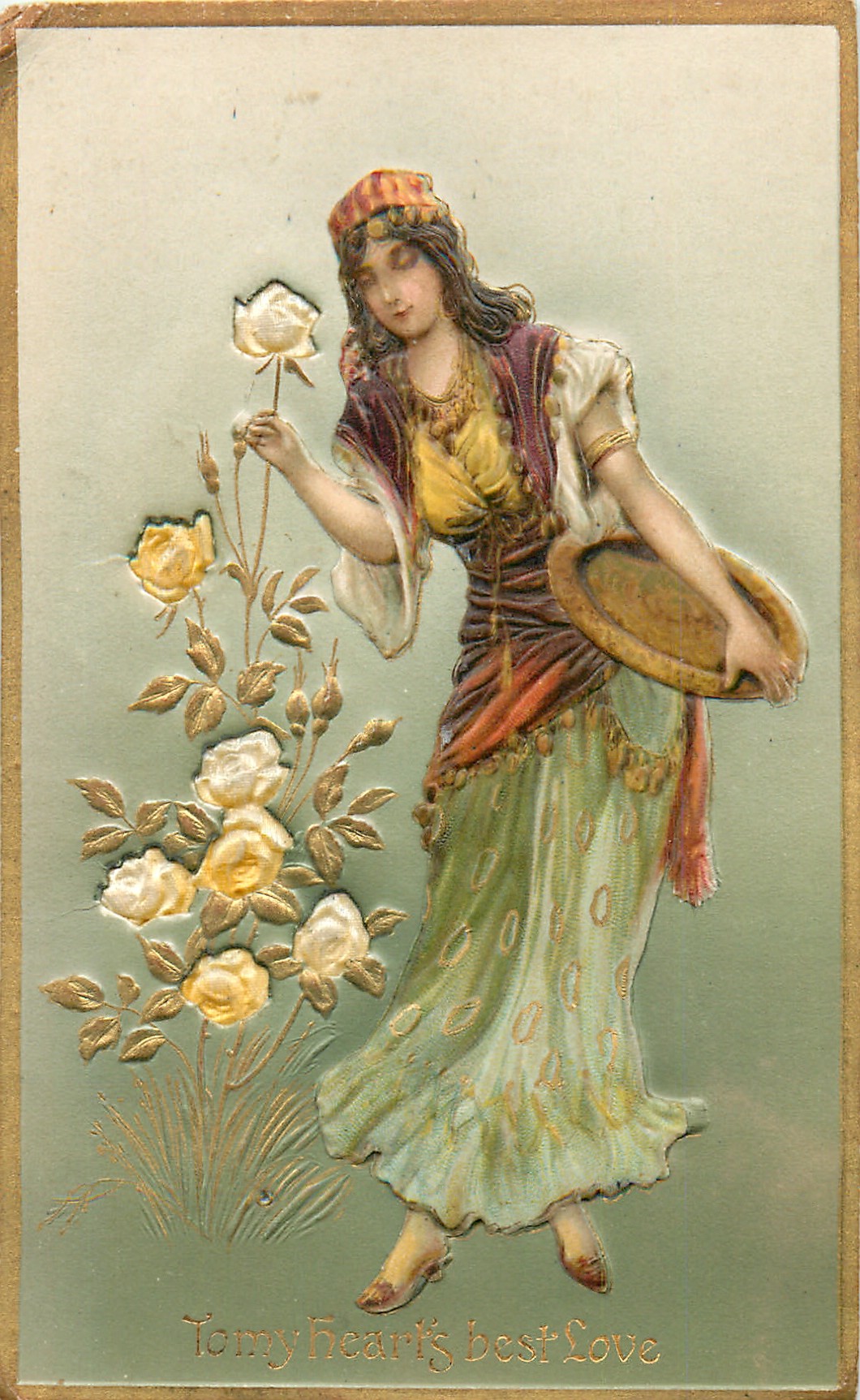TO MY HEART'S BEST LOVE girl in green skirt, roses left