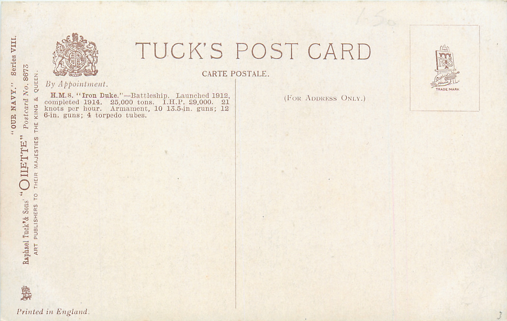 OILETTE, PRINTED IN ENGLAND, same images and card titles OUR IRONCLADS 8673