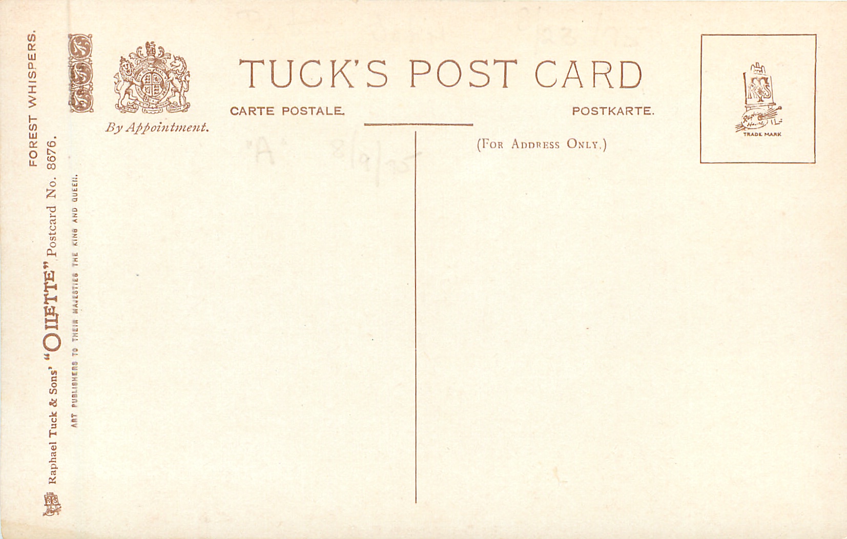OILETTE, PROCESSED IN BAVARIA, comes covered by filigree during World War I, same image, German back, OILETTE 977 DAS LAUSCHEN IM WALDES