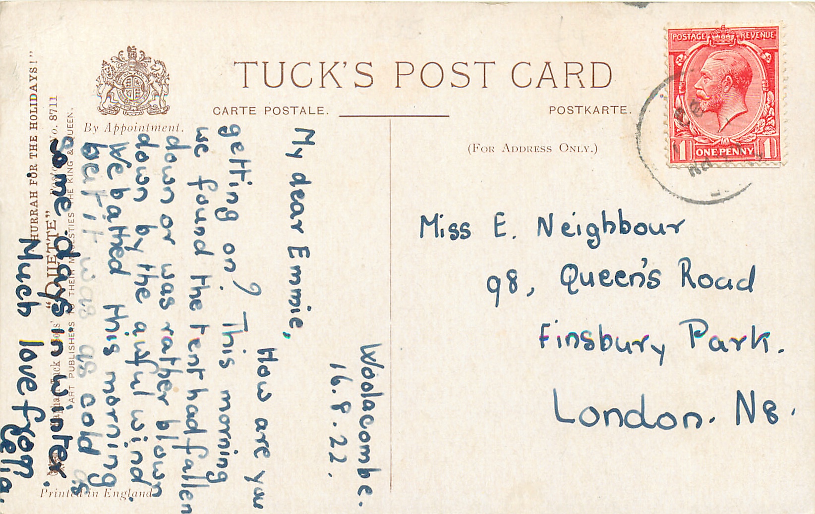 OILETTE, PRINTED IN ENGLAND, listed in 1930 POSTCARD catalogue,