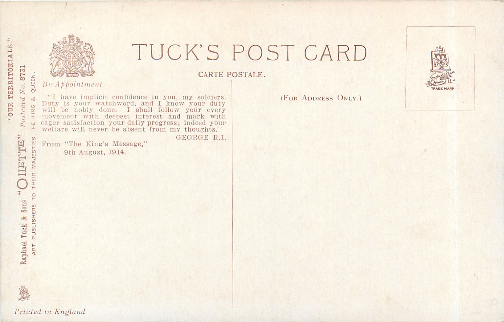 back:- FROM "THE KING'S MESSAGE," 9TH AUGUST, 1914