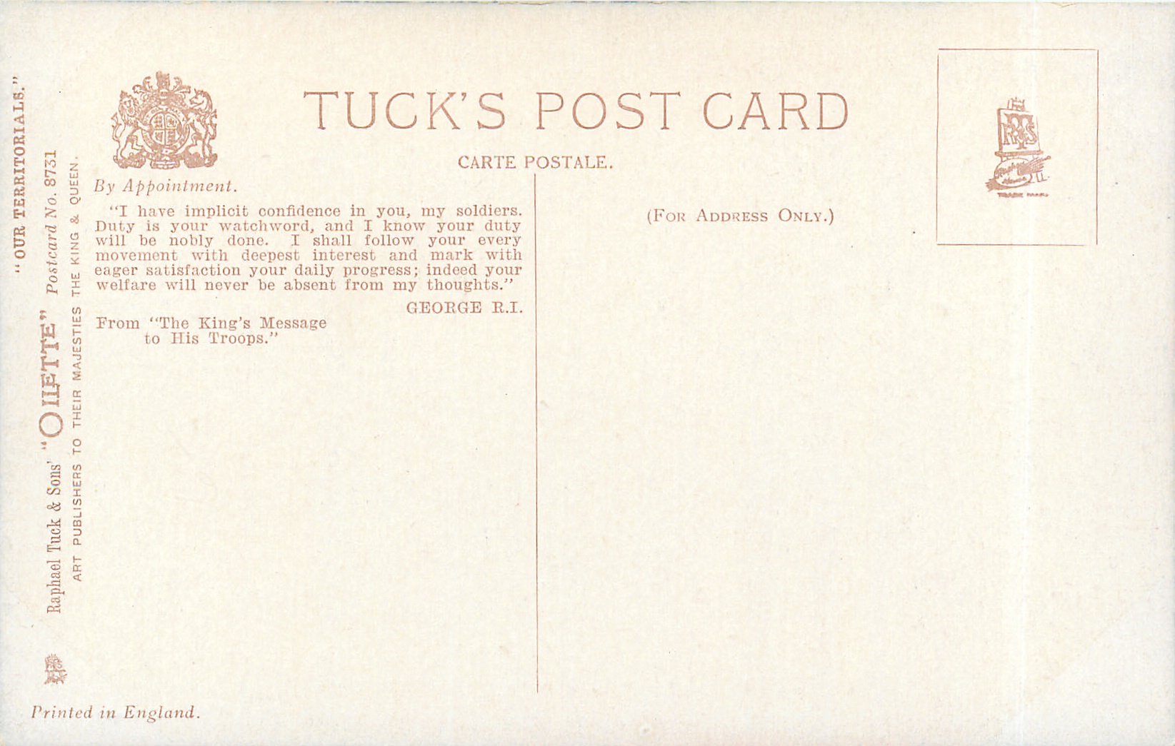 back:- FROM "THE KING'S MESSAGE TO HIS TROOPS."
