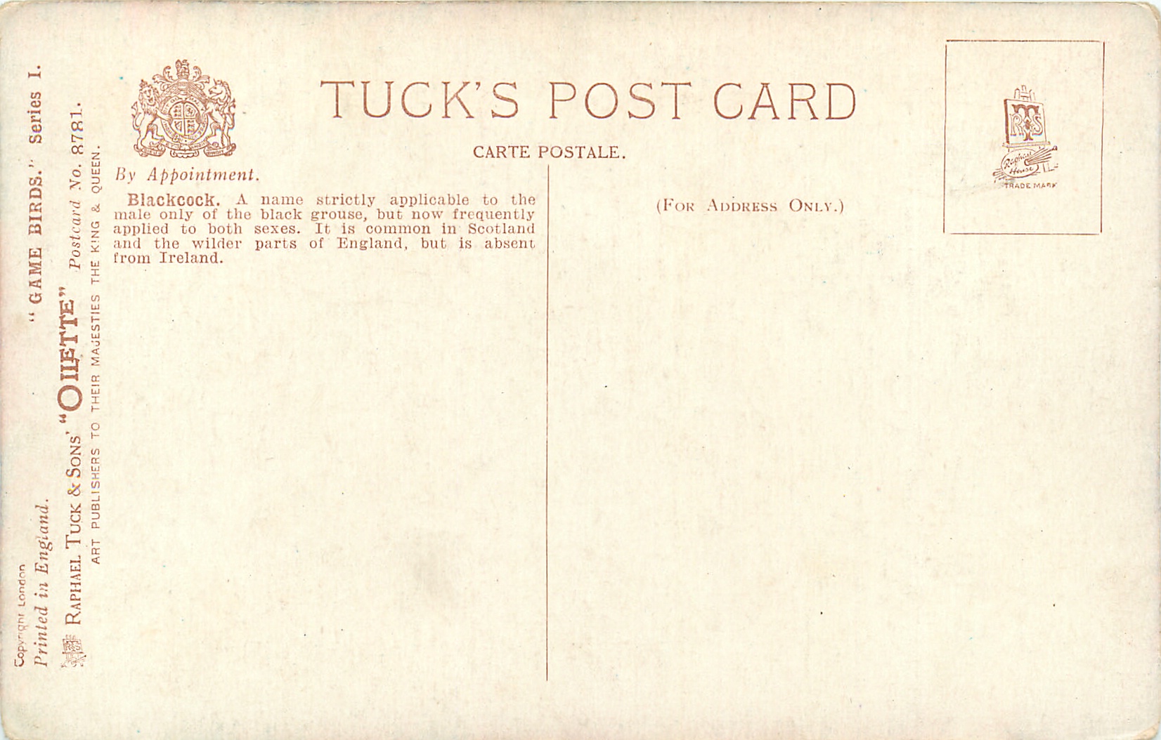 OILETTE, COPYRIGHT LONDON, PRINTED IN ENGLAND or PRINTED IN THE UNITED KINGDOM, come o/f, not so trade named, 2 backs, back card title, listed in 1926/1927 & 1930 Postcard Catalogues