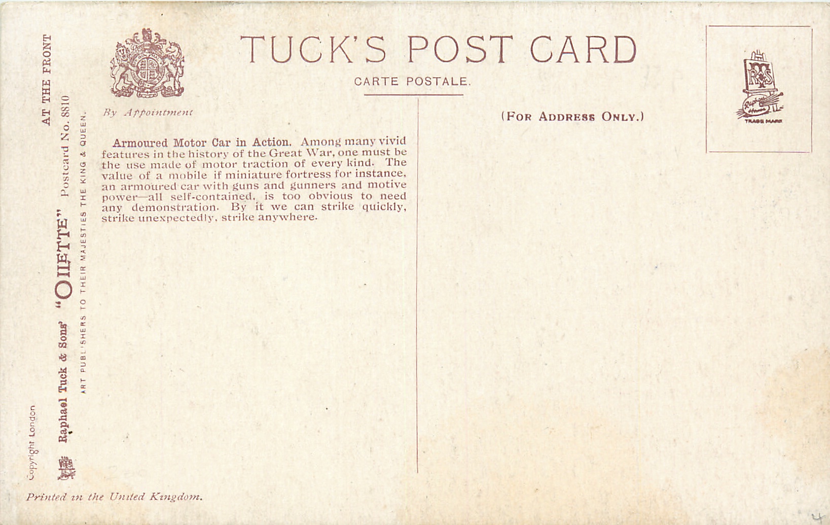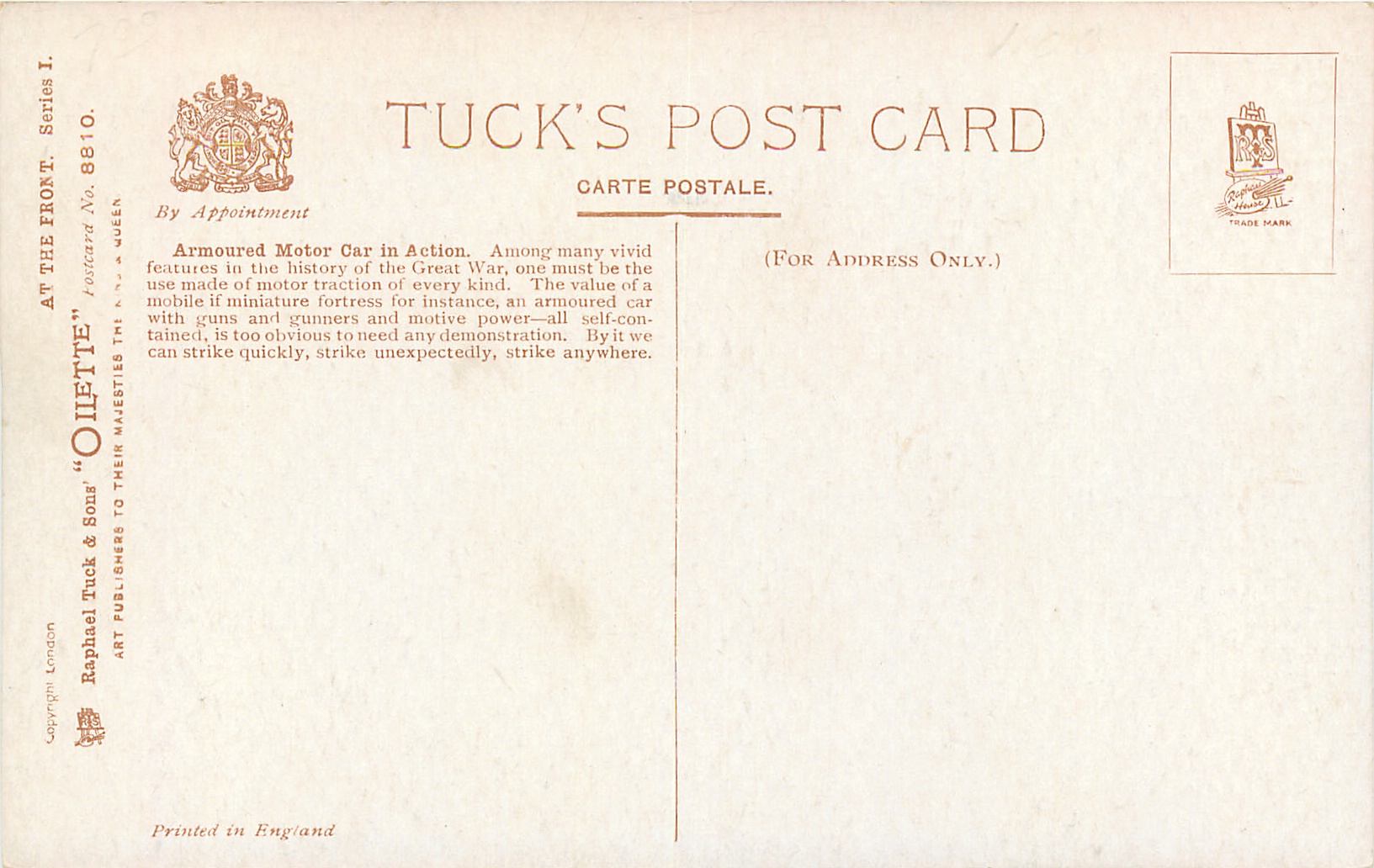 OILETTE, PRINTED IN THE UNITED KINGDOM, COPYRIGHT LONDON, same images & card titles AT THE FRONT SERIES I, 8810
