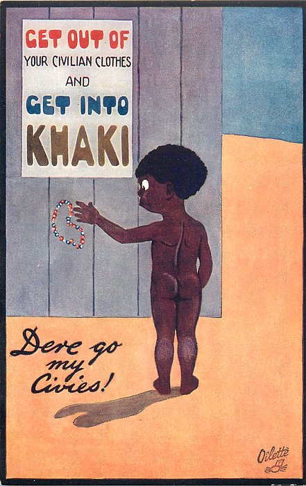 GET OUT OF YOUR CIVILIAN CLOTHES AND GET INTO KHAKI!, DERE GO MY CIVIES!