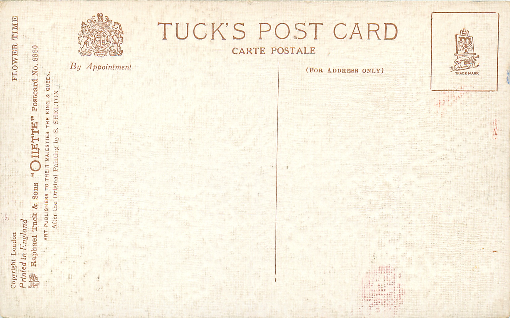 4 backs, same image 3602 WOODLAND WALKS, OILETTE or OILFACSIM (O.F. prefixes) or o/f (not so trade named), come with AMERICAN Y.M.C.A. ad on front, come with greetings & verse on back, listed in 1926/1927 POSTCARD catalogue