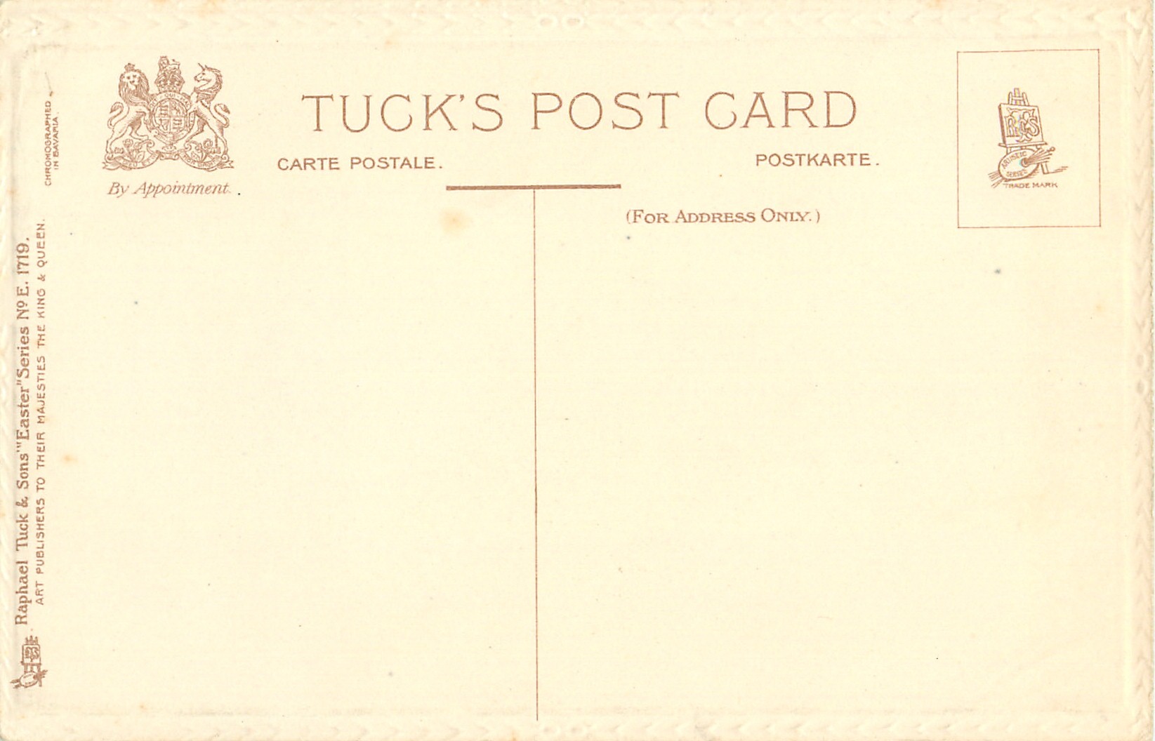 embossed silvered borders, silver inscr., come beaded, CHROMOGRAPHED IN BAVARIA