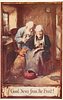 GOOD NEWS FROM THE FRONT! elderly couple sit reading letter, dog observes