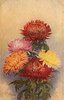 two orange/red, one yellow, one gold and one purple mum