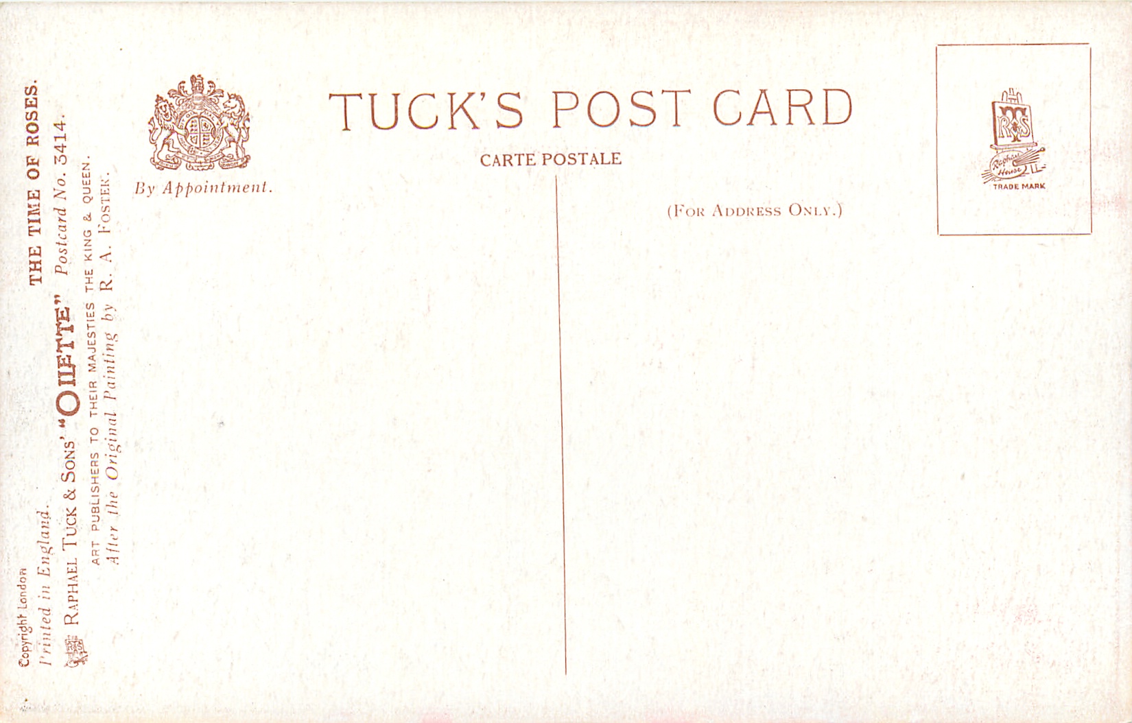 OILETTE, PRINTED IN ENGLAND, COPYRIGHT LONDON, come O/F but not trade named, flower names follows or below Series Titles, AFTER THE ORIGINAL PAINTING BY R.A. FOSTER.