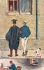TEMPTATION PROOF scholar at window resists leaving his book, two below & dog tempt him