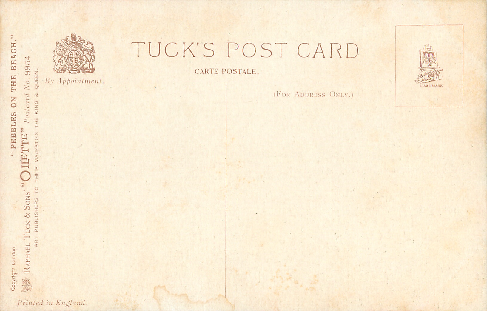 OILETTE. PRINTED IN ENGLAND with or w/o COPYRIGHT LONDON, listed in 1914 Postcard Catalogues