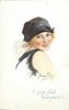 I JUST FEEL BUOYANT! girl in black bathing costume & hat